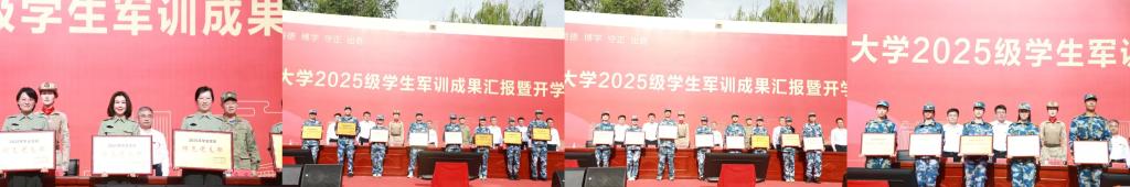 大会对军训期间的先进团队进行表彰。我院军训八团所在的第二临时党支部获评“特色党支部”荣誉称号。外语学院军训八团凭借扎实工作,获评“军训工作先进集体”、“内务卫生先进集体”、“分列式十佳方队”荣誉称号。2025级辅导员张淑敏、张书艺荣获“军训工作先进个人”称号。外语学院军训八团获得军训表彰全满贯,以迷彩之名书写青春荣耀!