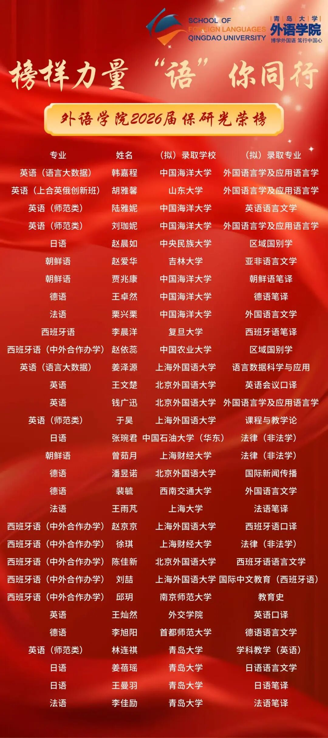再传喜讯|外语学院2026届保研光荣榜揭晓,31人踏上新征程!