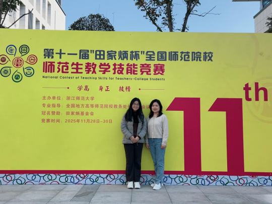 2025年11月28-30日,第十一届 “田家炳杯” 全国师范院校师范生教学技能竞赛在浙江师范大学圆满落幕。我院2023级英语教育系本科生曹馨月表现亮眼,荣获全国二等奖,指导教师为秦硕谦、布占廷、贾伟。