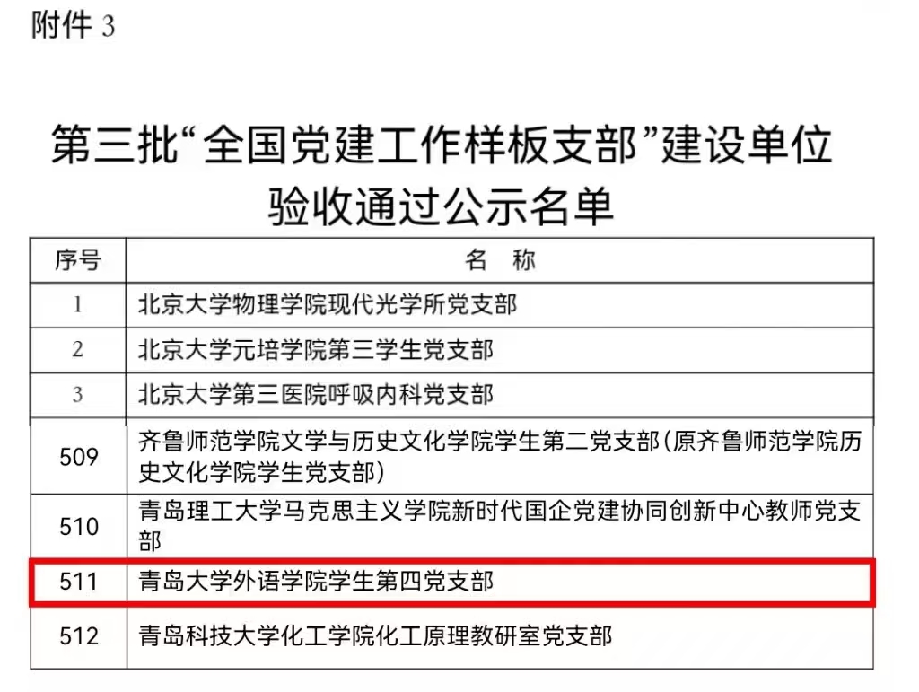 标志性思政育人成果|第三批全国党建工作样板支部 青岛大学外语学院学生第四党支部