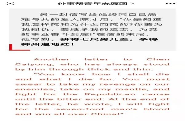 标志性思政育人成果|多语思政团队社会服务与国际传播案例汇总:“红色家书外译”项目部分推送截图