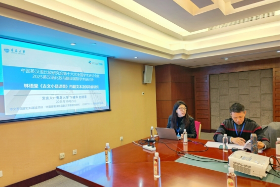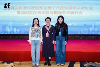 “中国英汉语比较研究会第十六次全国学术研讨会暨2025英汉语比较与翻译学术研讨会”由中国英汉语比较研究会主办,全国新文科教育研究中心、山东大学外国语学院承办。不同研究领域的学者在英汉语言对比、翻译研究及中西文化对比三大板块之下,共同探讨外语学科的时代新使命以及新文科背景下外语学科的交叉融合与实践创新。我院师生积极参与此次学术研讨会,同与会专家学者深入交流最新研究进展,并与我院2022届校友、上海大学在读博士贾楠同学见面交流,积极宣传了我院教学与研究成果。