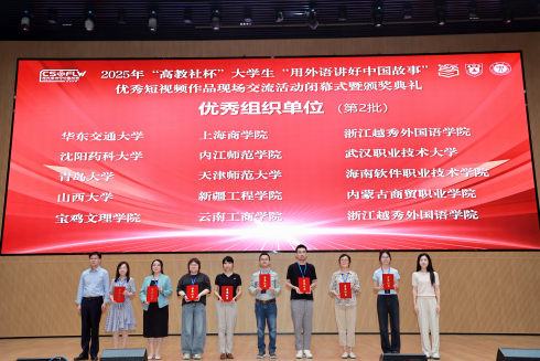 9月19日–21日,2025年“高教社杯”大学生“用外语讲好中国故事”相关赛事全国总决赛在武汉举行。本次赛事聚焦青年实践创新与跨文化传播能力提升,鼓励高校学子以多元形式展现当代中国青年的责任担当与国际视野,吸引全国多所高校参与角逐。其中,青岛大学外语学院原创作品《潮声》作为山东省唯一入选国赛的作品,斩获全国一等奖,孙旻、温凌鹤获优秀指导教师,青岛大学获优秀组织单位。