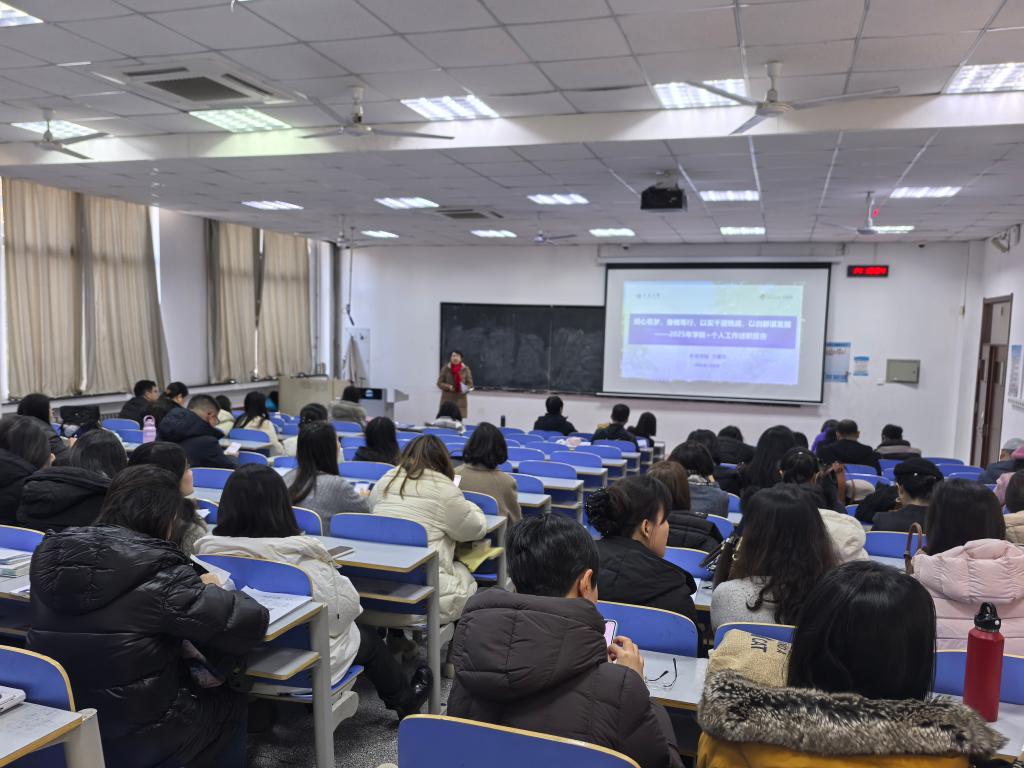 2026年1月9日下午,外语学院在博学楼103举办2025年度工作总结及中层干部述职大会。