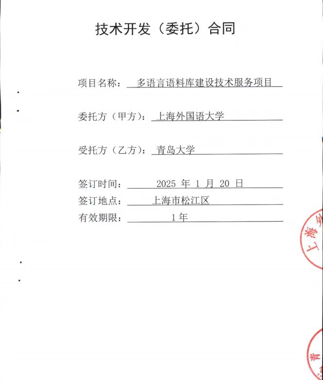 成果推广应用证明|上海外国语大学多语言语料库建设技术服务项目