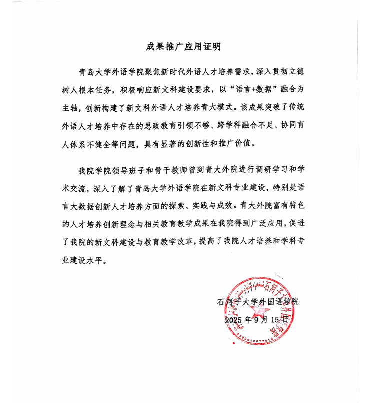 成果推广应用证明|石河子大学